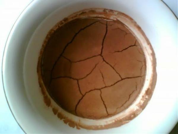 Foto 3. Kuivatatud savi sügavas anumas. Kui lahusele ei lisatud liimi ega tsementi, saab seda uuesti segada.