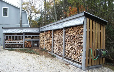 - סככת עצים שנבנתה כראוי מכילה פערים ברצפה ובקירות. חשוב לוודא אוורור טוב של עצי הסקה במהלך האחסון.