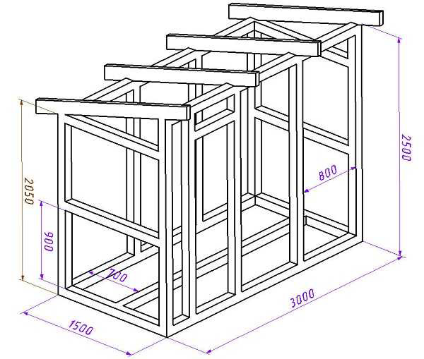אם תחליטו לבנות סככת עצים בצורת חופה, אז האפשרות הפשוטה ביותר היא לבנות אורך 2–2.3 מטר, רוחב 50–70 ס"מ וגובה 1.2–1.5 מטר.
