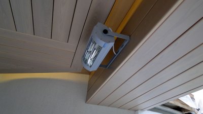 תמונה 3. תנור אינפרא אדום לתקרה בבית עץ פרטי. המכשיר ממוקם במרחק מה מהתקרה.