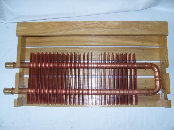 תמונה 4. רדיאטור חימום נחושת. מורכב מצינור שדרכו עוברות לוחות נחושת רבים.