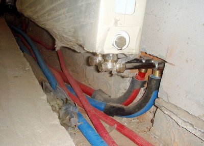 החיבור מתבצע ישירות לציוד החימום אוֹ דרך בלוק מיוחדכך שבמהלך התיקונים לא תצטרכו לנקז מים מהסוללה כשהיא מנותקת.
