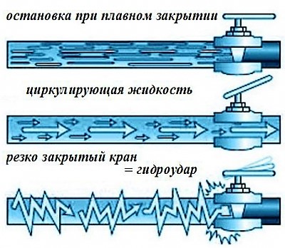 - בְּ- סגירה פתאומית של הברז, שסתומי סגירה.