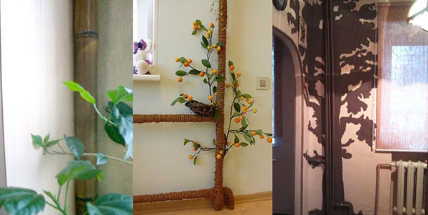 תמונה 4. שלוש אפשרויות שונות לקישוט צינורות חימום באמצעות חבלים ובמבוק.