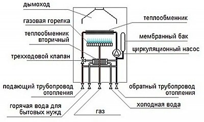 דודי גז המותקנים על הקיר אינם דורשים ארובה או חדר נפרד. חמצן לשריפת גז מגיע דרך צינור גלי גמיש.