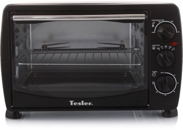 תמונה 1. תנור מיני טסלר מדגם EOG-1800 שחור. ישנם שלושה מתגים מכניים על הגוף.