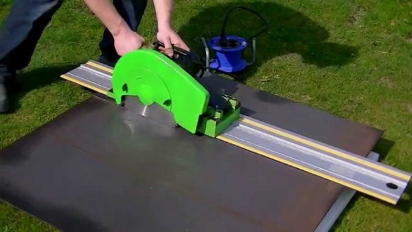 תמונה 6. יש לחתוך יריעת פלדה בעזרת מטחנה בזהירות רבה. כדי ליצור קו חיתוך אחיד, ניתן להשתמש ברצועת מתכת נוספת.