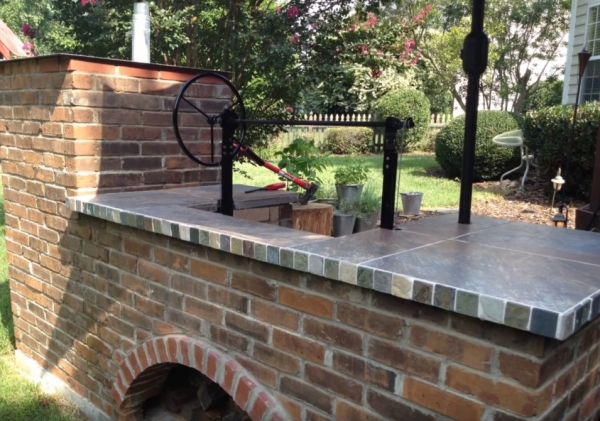 האזור ליד בית המנגל-מעשנת הלבנים מסודר לפי טעמכם - נוסף משטח שולחן, מקום לאחסון כלים ואביזרי בישול, בונים גזיבו או גגון, רצפת האזור מונחת באריחי אבן או ממולאת בבטון. המנגל עם בית המנגל ממוקם הרחק מהבית, הפלטה ממוקמת בצד המוגן — כך שהעשן לא יהפוך למכשול בבישול. מומלץ להביא ביוב ומים לאתר. בוצע תְאוּרָה אזור העבודה יאפשר בישול בלילה.