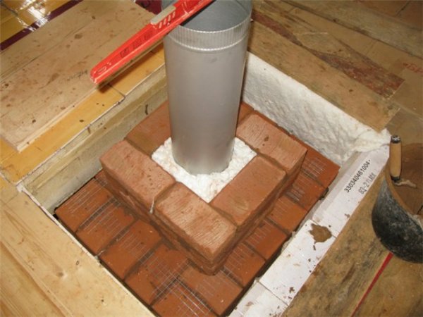 תמונה 3. מוצג תהליך התקנת שרוול בארובה: הצינור עצמו, חומר עמיד בחום, בנייה מפורקת.