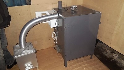 Pretējā pusē no kurtuves un vietā, kur pagriežas iekšējais skurstenis, a ārējais skurstenisBlakus vietai, kur iekšējais skurstenis saskaras ar kurtuvi, ir uzstādīta koka kamera aukstajai kūpināšanai ar durvīm. Tieši virs pašas kurtuves ir uzstādīta metāla kamera karstajai kūpināšanai. Kameru iekšpusē ir piestiprināti grili un āķi smēķēšanas produktiem.